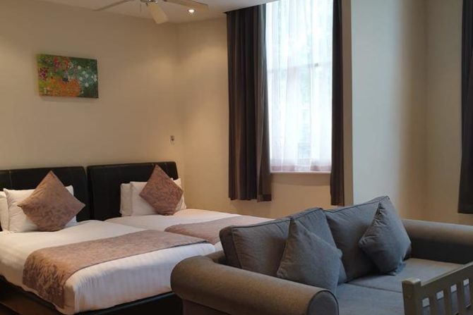 The studios and apartments are equipped with bedding, furnishings, free WiFi, en-suite bathrooms, flat screen TVs with Sky channels, fridges, hobs and microwaves. Some apartments include electric ovens. Please ask the reservations department for details. Bathrooms offer contemporary, tiled décor with showers or baths, washbowls and toiletries.